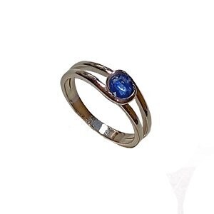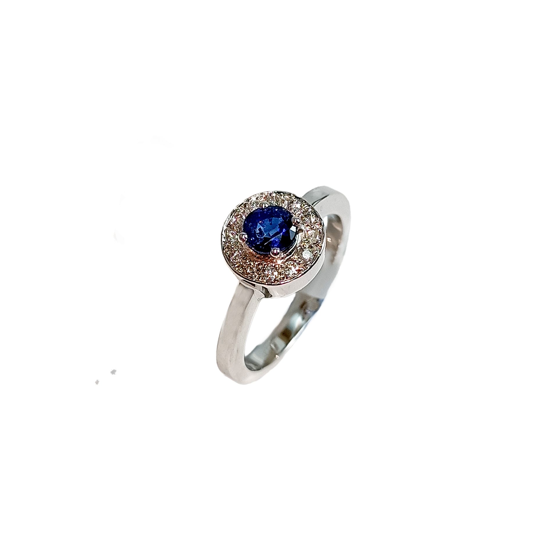 Sortija oro blanco con zafiro azul y orla de brillantes