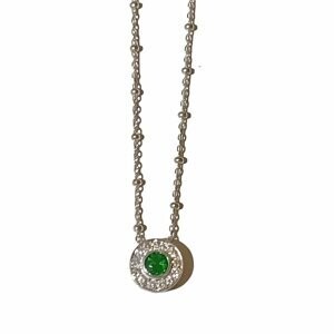 Colgante en oro blanco con cromoturmalina 0,23cts y orla de 13 brillantes