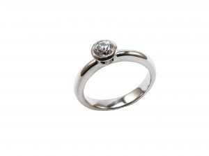 Sortija solitario en oro blanco con brillante 0,10cts en chatón